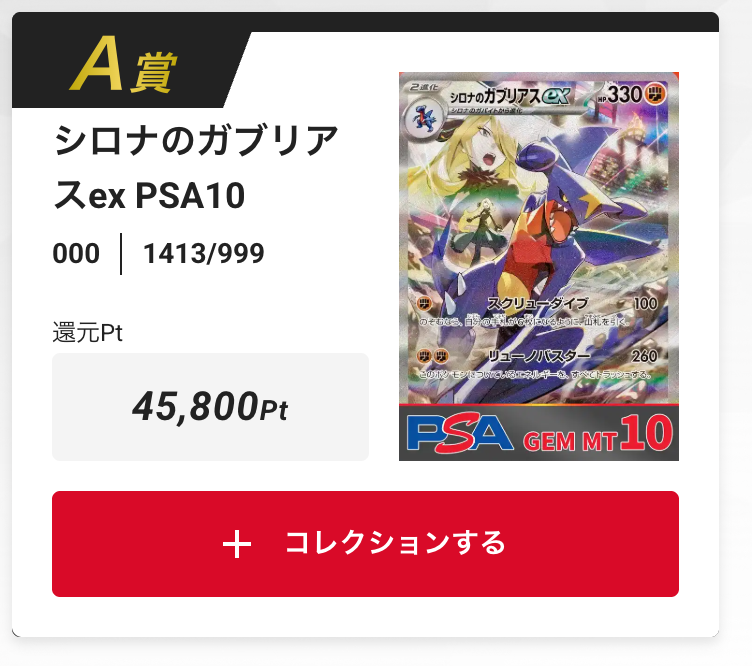なんと45800ptの「シロナのガブリアスex」PSA10が当たりました!!!!