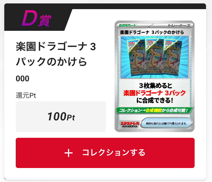 「楽園ドラゴーナ」3パックのかけらが当たりました!⇒1パック目!