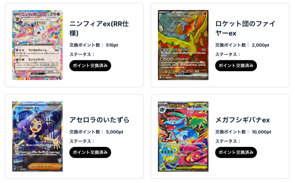 「1日1回限定オリパ」500pt ⇒ 「ニンフィアex(RR仕様)」が当たりました!