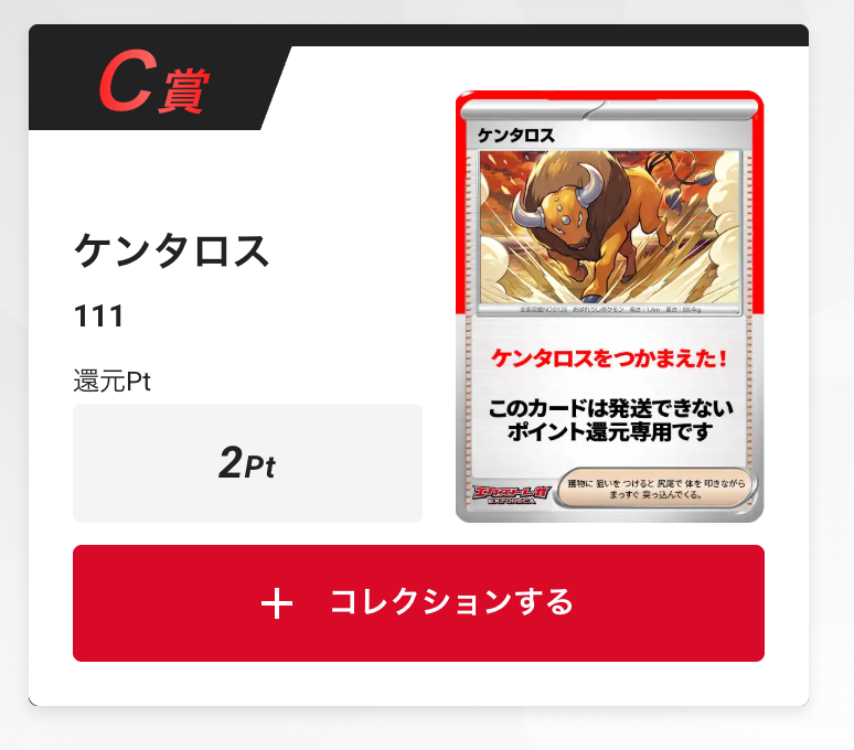 ポイント還元専用カード 2,100ptが当たりました(+100pt)。