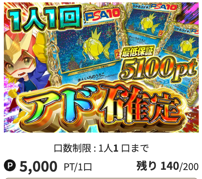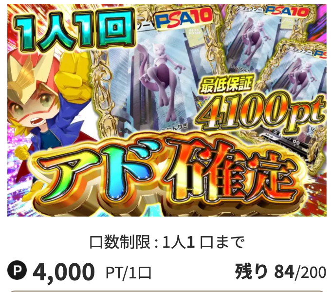 22時頃に100口限定のPSA10ミステリー(一口21600pt/100口)の販売開始!
