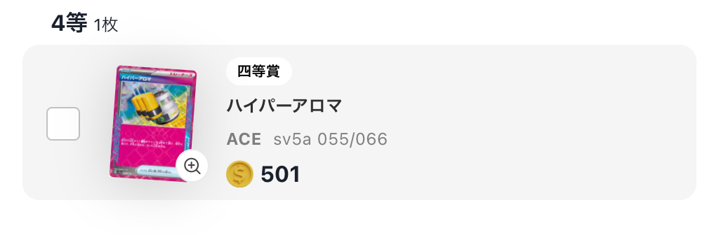 「未来の一閃」1パックが当たりました!⇒ ポイントに交換