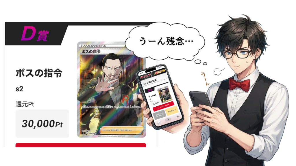 最低保証の30,000ptで「ボスの指令」が当たりました(-6,999pt)。